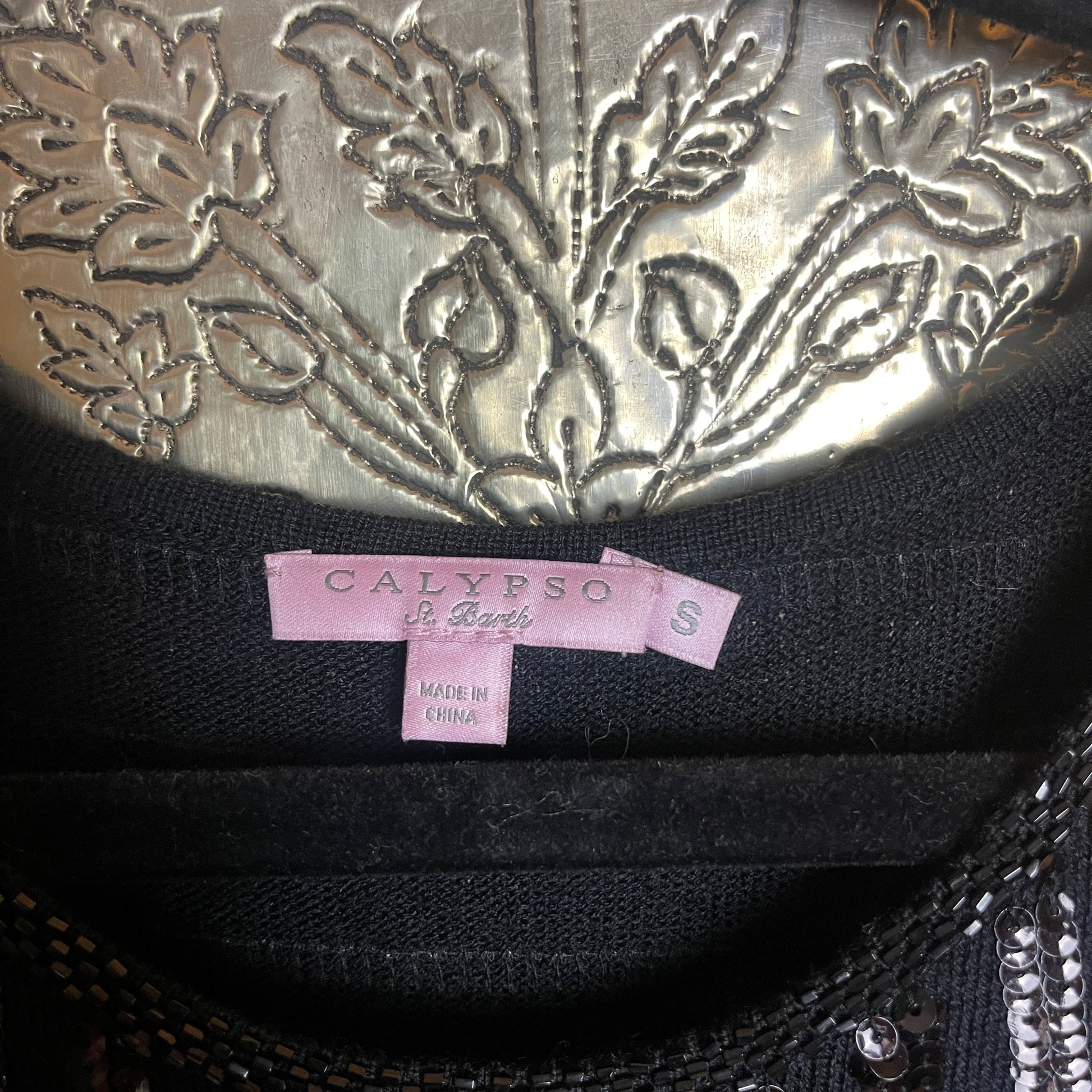 Calypso St Barth Black Sequined Sleeveless Knit Dress Art Deco Pattern Size Small